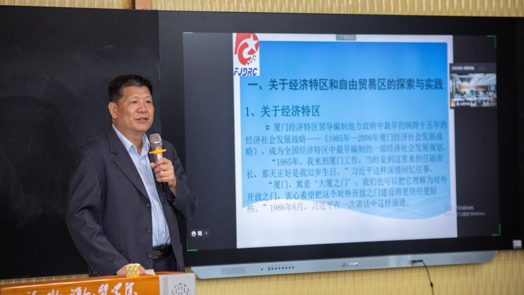 △福建省政府发展研究中心原副主任黄端作题为《习近平在闽期间有关对外开放的探索与实践》的主旨演讲