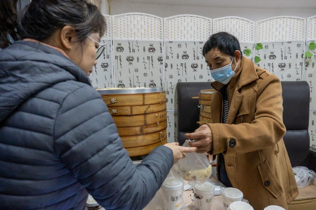 只见下班准备回家的教职工们正有序地领取由学校免费供应的“暖冬点心”。手捧着温暖精致的点心,教职工们的脸上露出幸福的笑容。