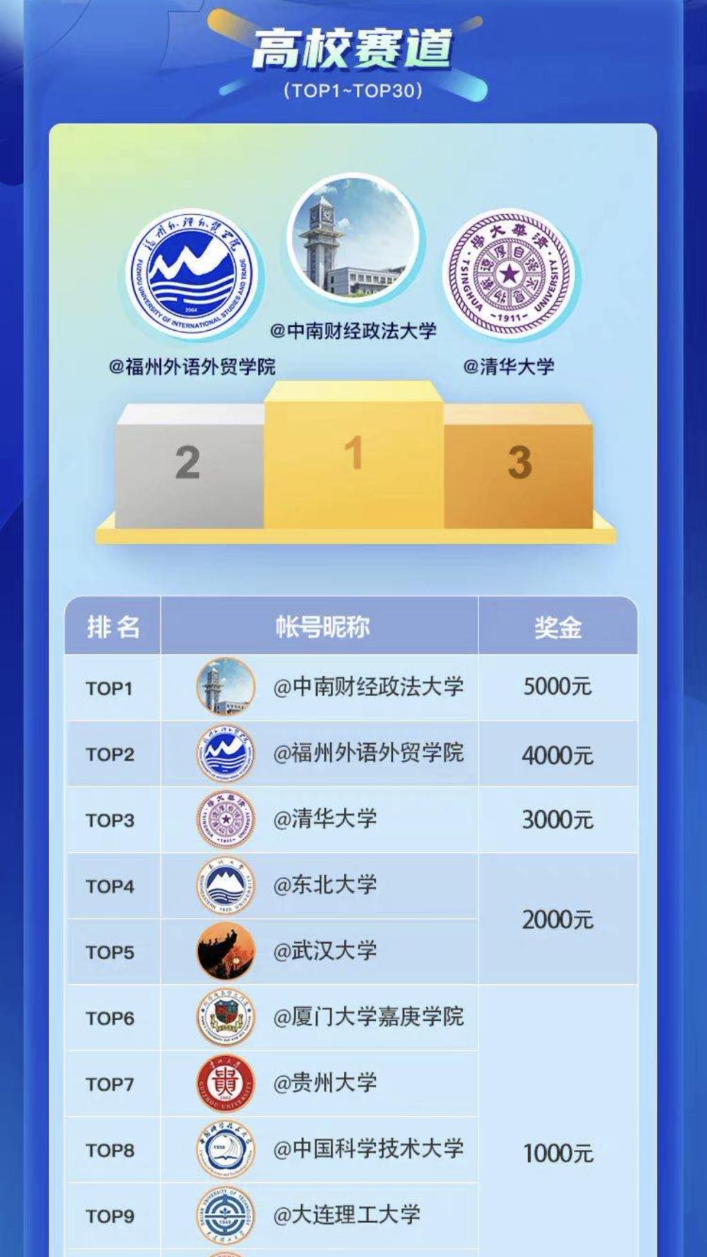 据悉,本次校园VLOG大赛由新浪微博主办,活动从2020年10月29日持续至12月31日,根据参赛用户视频发布量、视频互动量、视频有效播放量等数据进行综合评选,吸引了清华大学、厦门大学、中南财经政法大学等知名高校参赛。活动通过微博站内资源支持,挖掘具有原创实力的校园用户,积极发挥网络育人作用,营造健康向上的校园文化氛围。