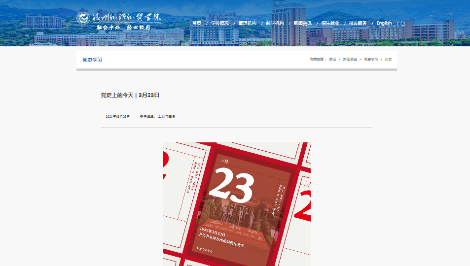 全面启动“党史上的今天”万屏联动宣传活动,学校官方网站、微信公众号、微博及抖音号开辟“党史上的今天”栏目,学校各类宣传阵地也纷纷“亮屏”