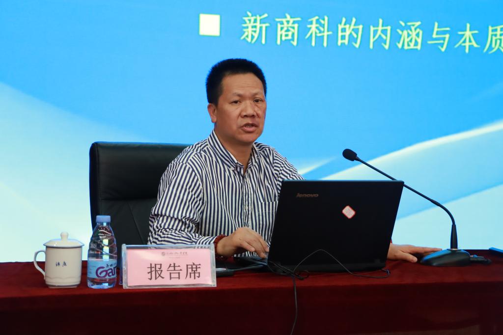 东北财经大学唐加福教授作题为《新商科背景下大数据管理与应用专业人才培养的理解与思考》的专题报告。唐教授从世界变局、科技革命、高等教育发展需要三方面深刻剖析了新文科发展的时代背景与需求,揭示了新商科的内涵与本质特征,并以东北财经大学大数据管理与应用专业为例,多角度阐释了对大数据管理与应用的理解,分析了欧美BA硕士课程、香港城市大学BBA课程体系,提出了大数据管理专业的定位与培养类型的思考。他指出,当前大数据专业的社会需求大,需求层次参差不齐、类型多样,高校应结合自己的特色和优势,进一步明确专业定位,不仅要在数量上配足师资,在质量上还要覆盖统计、计算机、管理与优化决策等学科领域。要不断优化课程体系,推进核心课程中一般性要求与培养类型方向齐头并进,实施骨干课程模块化设置,着力提升信息化时代应用型、复合型、创新型新文科人才培养质量。