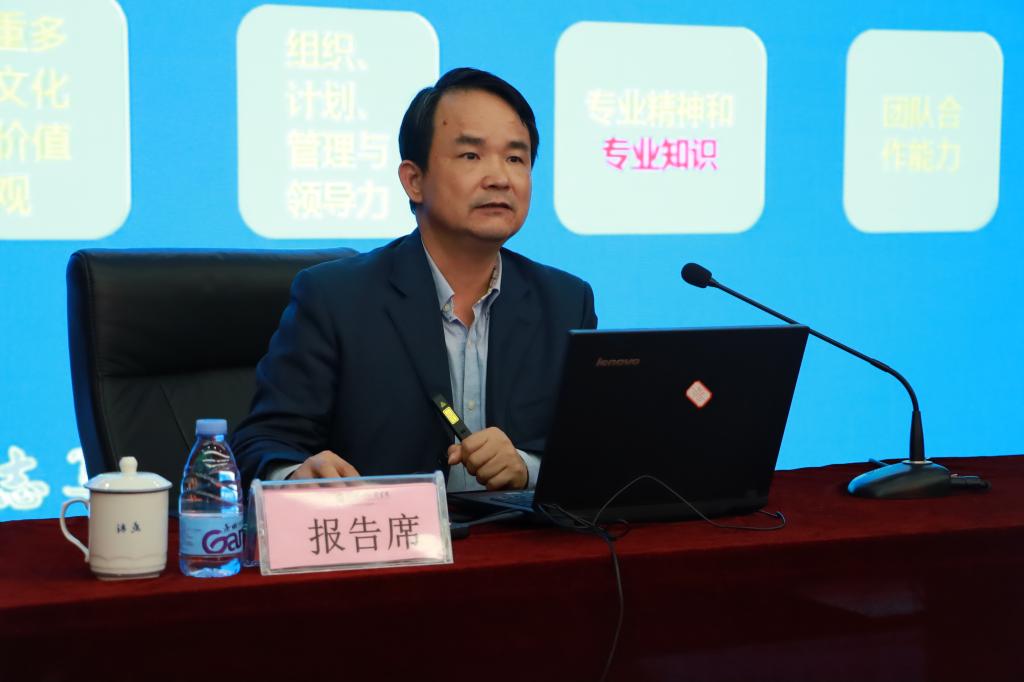 闽南师范大学副校长张龙海教授作围绕《新文科大外语背景下的商务英语人才培养模式思考》主题作专题报告。张教授首先从国家政策层面详细分析了新时代对商务英语人才提出的新要求,并结合闽南师范大学实际,分享了商务英语人才培养的实践与思考。他指出,高等外语教育关系到高等教育人才的培养质量、关系到中国同世界各国交流互鉴,新文科背景下外语教育要超前识变,把握高等教育发展大势;要积极应变,加快推进新文科建设;要主动求变,培养“一精多会、一专多能”的国际化高素质复合型外语人才。