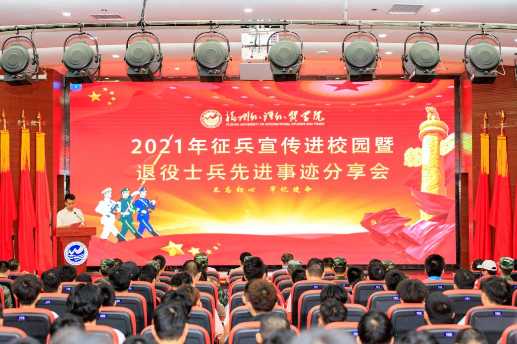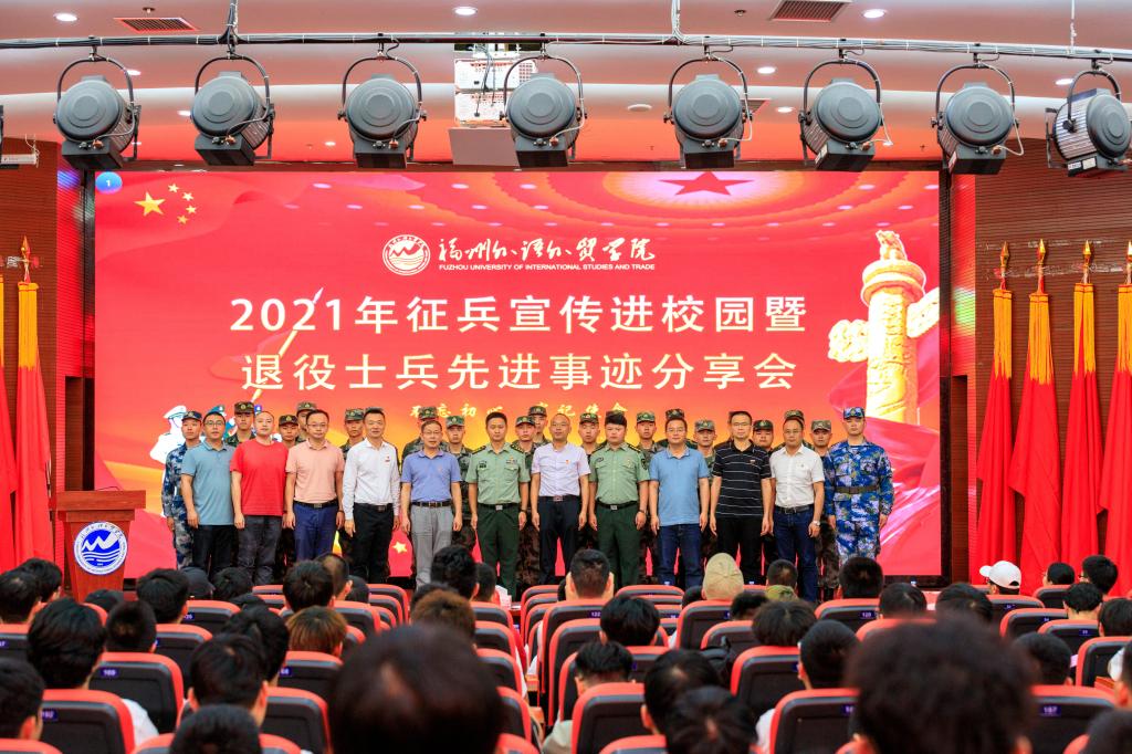 5月18日,我校召开2021年征兵宣传进校园暨退役士兵先进事迹分享会,长乐区委常委、武装部部长刘超,长乐区退役军人事务局局长卢丽明,校党委副书记、副校长徐国立,学生工作部负责同志,征兵工作站有关同志,师生代表和退役士兵代表等300余人参加活动。