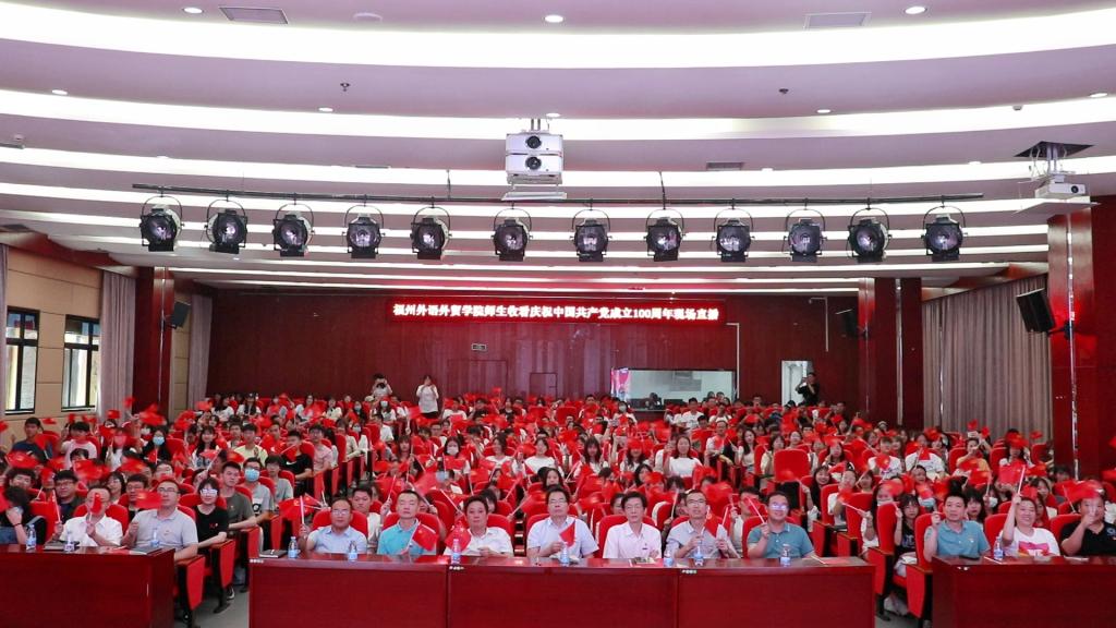 福州外语外贸学院组织全校党员、师生员工收听收看大会盛况,聆听习近平总书记重要讲话。校内各会议室、学生宿舍、办公室等场所,师生们通过电脑、手机等观看大会。在学校网络直播主会场内,校领导和党员、师生员工代表仔细聆听、认真观看,不时挥动起手中的党旗和国旗,并畅谈观看感受和学习体会,现场氛围隆重热烈。