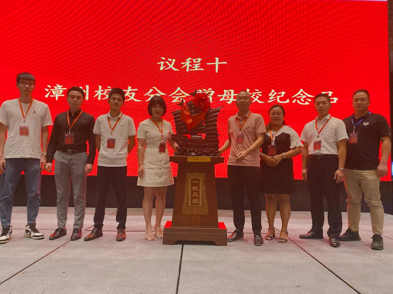 ▲漳州校友分会向母校赠予纪念品