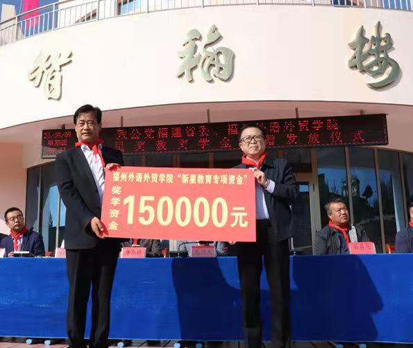 9日上午,福州外语外贸学院“新星教育专项资金”奖教、奖学金发放仪式在定西市临洮县衙下中学举行。仪式上,福州外语外贸学院向衙下新星致公学校发放2021年奖教资金15万元、奖学资金15万元。