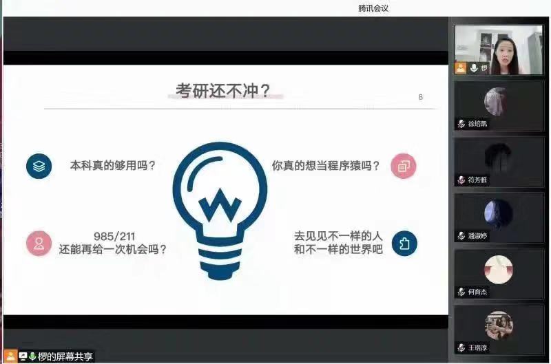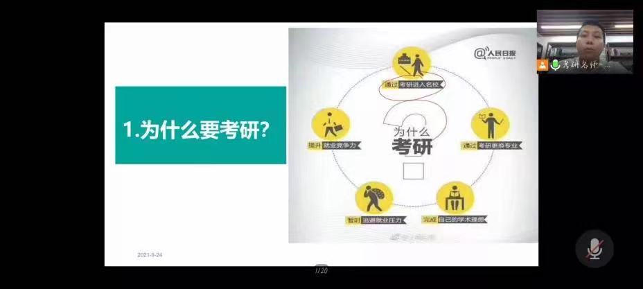 经管学院邀请培训机构讲师,通过腾讯课堂平台为全体2021级新生带来以“新起点,新目标”为主题的考研宣讲,旨在从新生入学阶段,树立起锐意进取的优良学风。