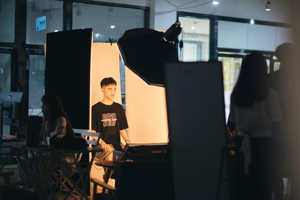 虽是快拍活动,专业设备却一个也不少,相机、无影灯、背景板、反光板...“为方便同学们拍照,我们将摄影棚搬到同学们出行必经的空旷的场地,在摄影质量上追求棚内效果,做到快而不简。”学生创业工作室“立刻有照相馆”成员骆俊龙介绍到。