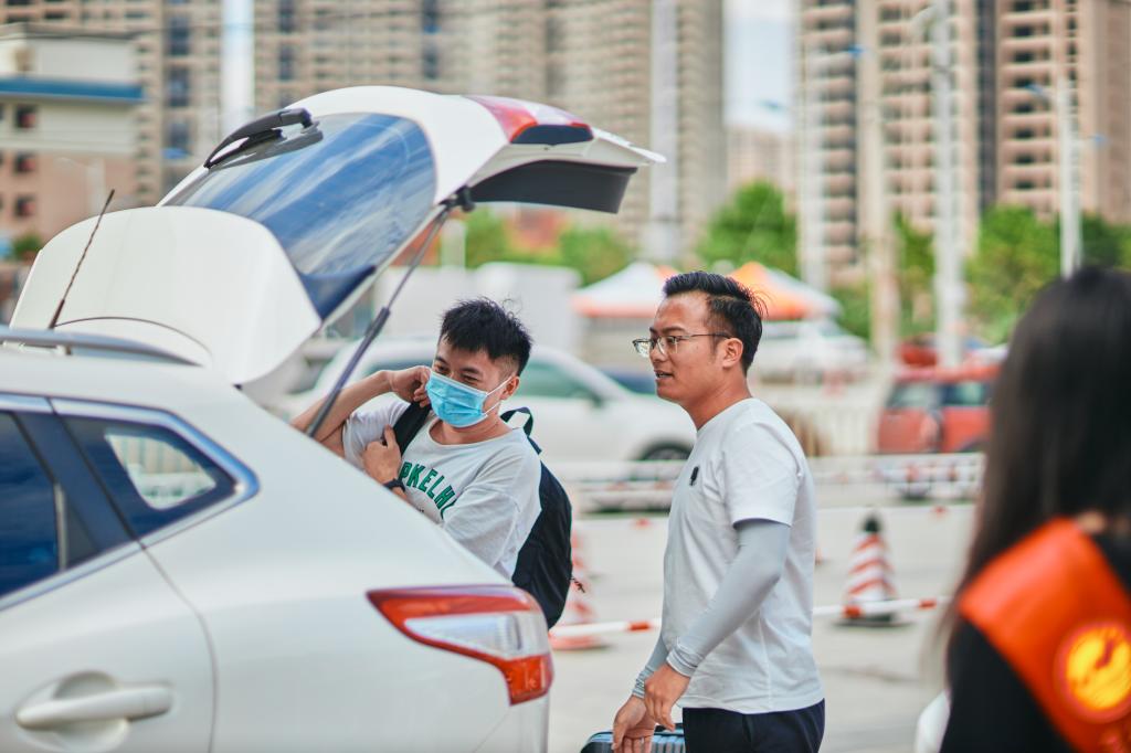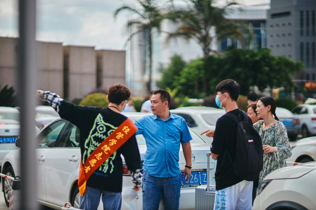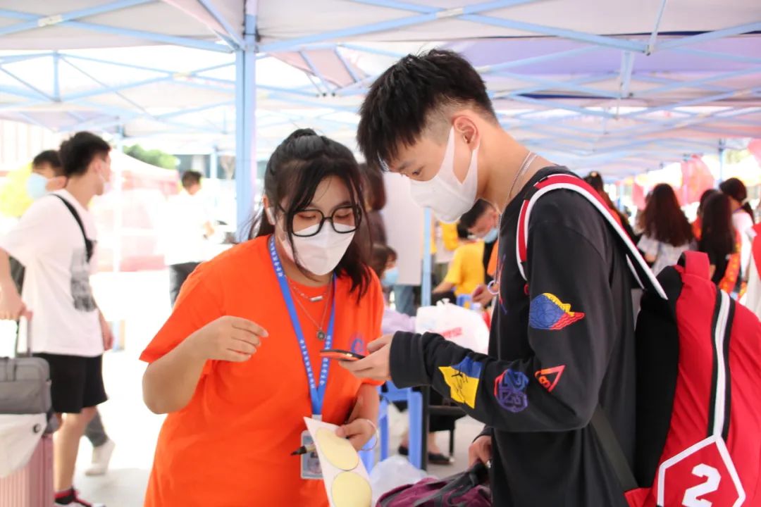 学校的迎新志愿者们一大早就前往动车站等候来校新生,只为给来到新环境的同学们带来家的温暖。自驾来校的家长和新生刚一下车,迎新志愿者就上前给予最热烈的问候,他们仔细地询问新生的专业,耐心地解答新生及家长们的问题,并做好引导。