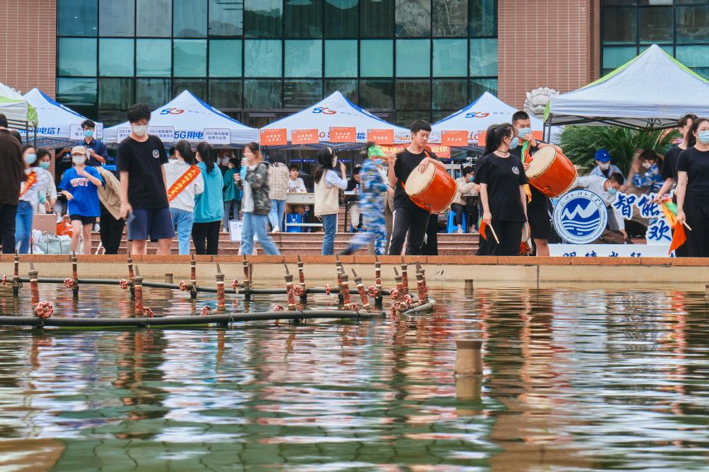 图书馆前的迎新大本营是最热闹的地方,学校的师长都前后奔波,忙碌不停。他们有的高举引导牌、有的帮助新生拿行李、学校太鼓队为欢迎新同学准备了精彩的表演、吉祥物“福小外”也前来助阵......现场热闹非凡。