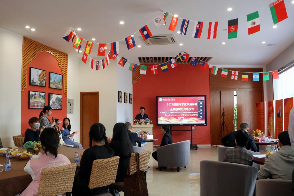 10月26日,2021级国际学生欢迎会暨国际经济与贸易专业全英授课班开班仪式在东南亚文化体验馆举行。因疫情不能来校的国际学生通过线上方式与校园里的老师、同学们一起参与了仪式。经管学院副院长、分党委书记吴培煌主持仪式。