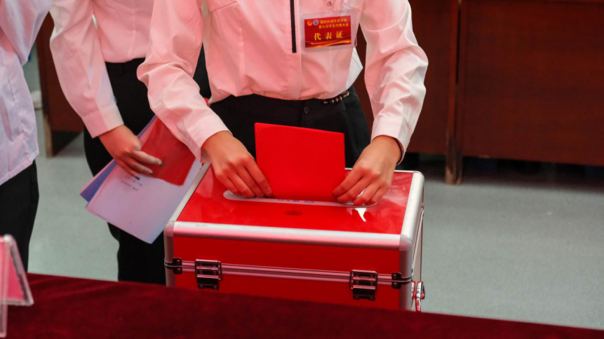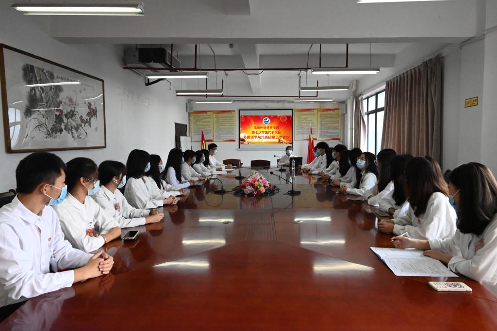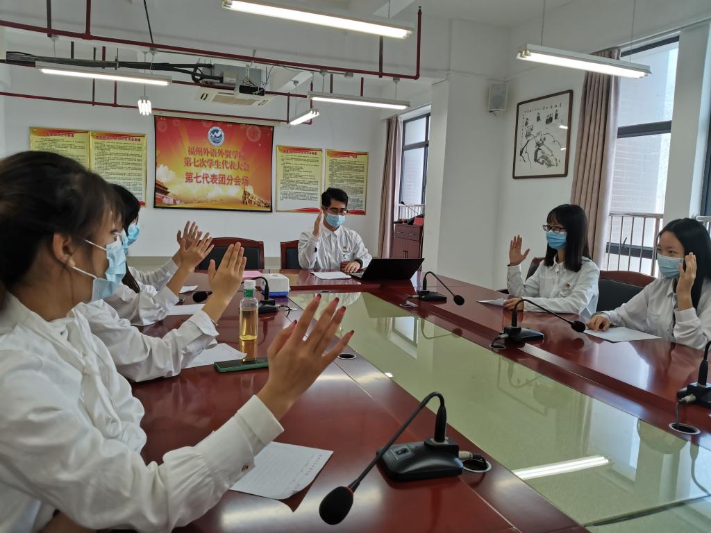 会议表决通过了大会选举总监票人、监票人和总计票人、计票人建议名单,选举产生了福州外语外贸学院第七次学生代表大会常任代表、第七届学生会轮值主席团。