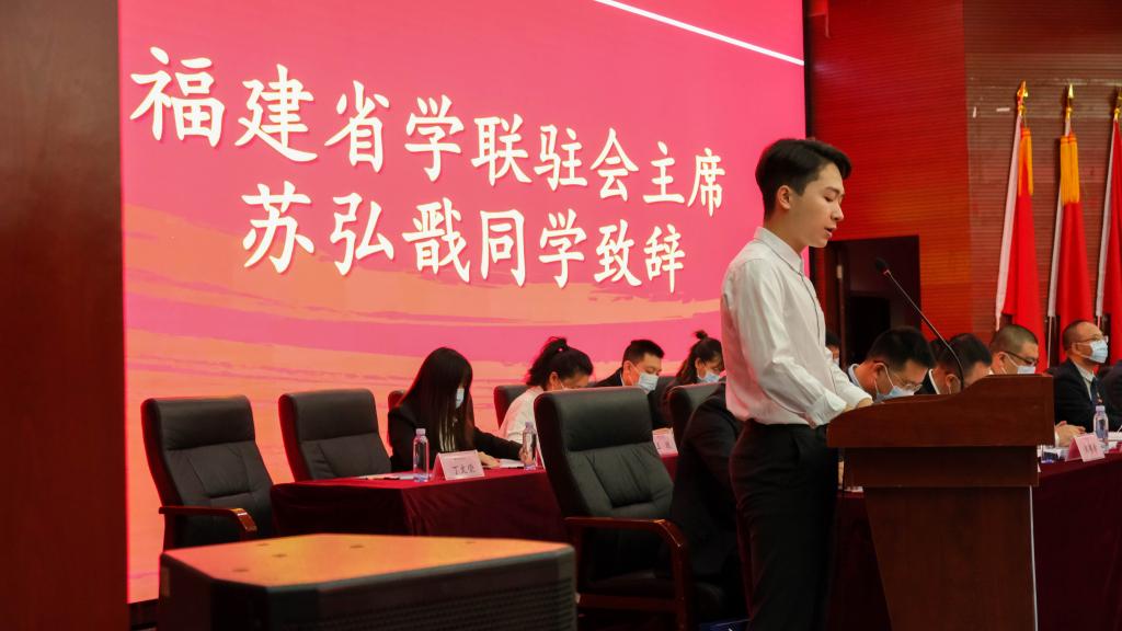 开幕式上,苏弘戬代表省学联对大会的召开表示祝贺。他表示,福州外语外贸学院学生会在引领学生思想、维护学生权益、促进学习成长、推进校园文化等多个方面取得良好成效,希望校学生会聚焦工作职能,坚定理想信念;永葆组织活力,持续推进改革;加强作风建设,服务学生成长。抓住机遇,勇立潮头,立足学校发展,积极投身于建设新时代新福建、为实现中华民族伟大复兴的中国梦贡献磅礴力量。