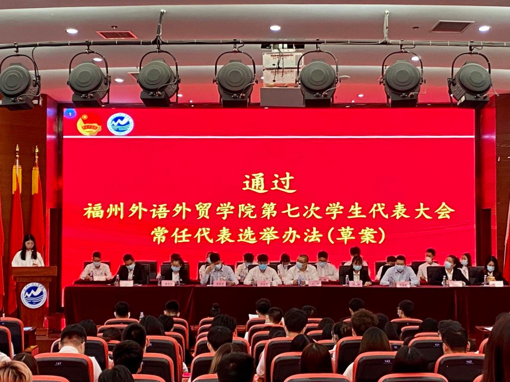 会议表决通过了福州外语外贸学院学生会章程(草案)、福州外语外贸学院第七次学生代表大会常任代表选举办法(草案)、福州外语外贸学院第七次学生代表大会主席团选举办法(草案)。
