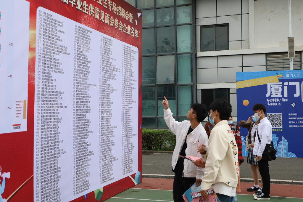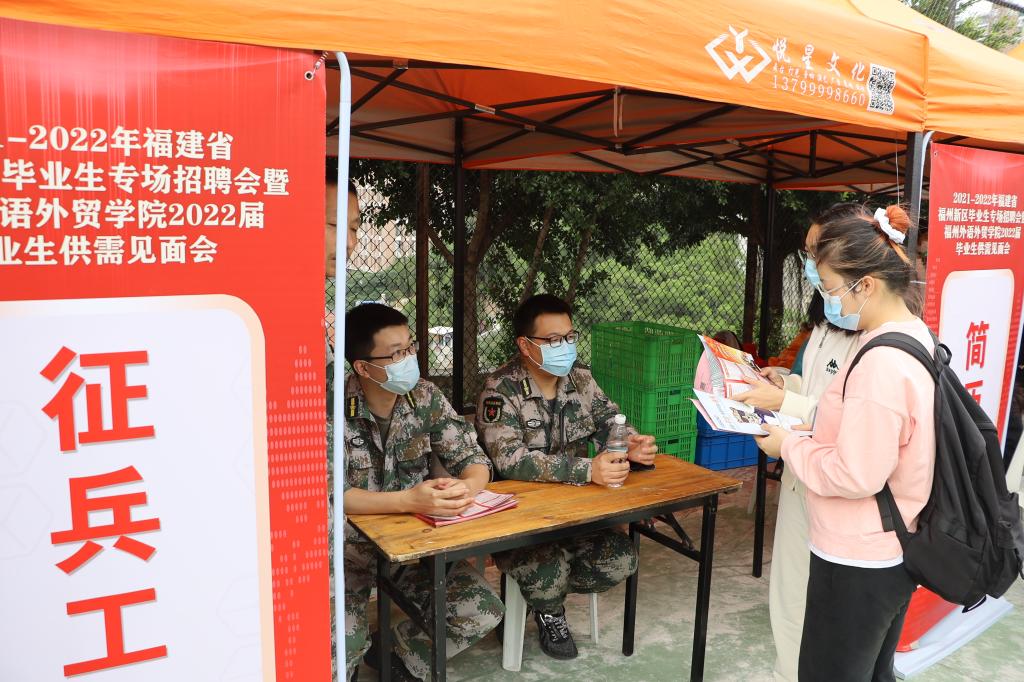 在提供就业岗位的同时,校毕业生就业指导中心联合中国海峡人才市场开展“最暖就业季”就业指导在身边系列活动。活动在招聘会现场设立“简历门诊”“资深HR面对面”“助力公考加油站”“就业政策咨询”等多个服务站,为应届毕业生现场答疑解惑。学校还联合长乐区武装部,在现场开展2022届毕业生征兵宣传咨询活动,武装部工作人员现场普及国防知识,向有意愿投身国防建设的毕业生们介绍兵役政策。
