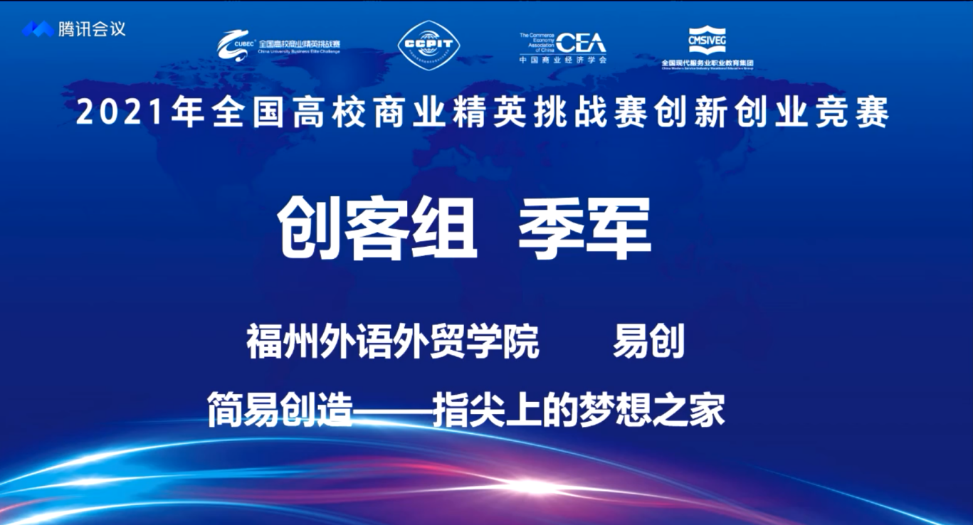12月11日至12日,2021年全国高校商业精英挑战赛创新创业竞赛全国总决赛在线上成功举办。在(创客组)精英赛中,我校学子与来自浙江师范大学、南昌航空大学等高校的参赛选手同台竞技,最终荣获创客组全国季军,并取得一等奖1项、三等奖1项的好成绩。