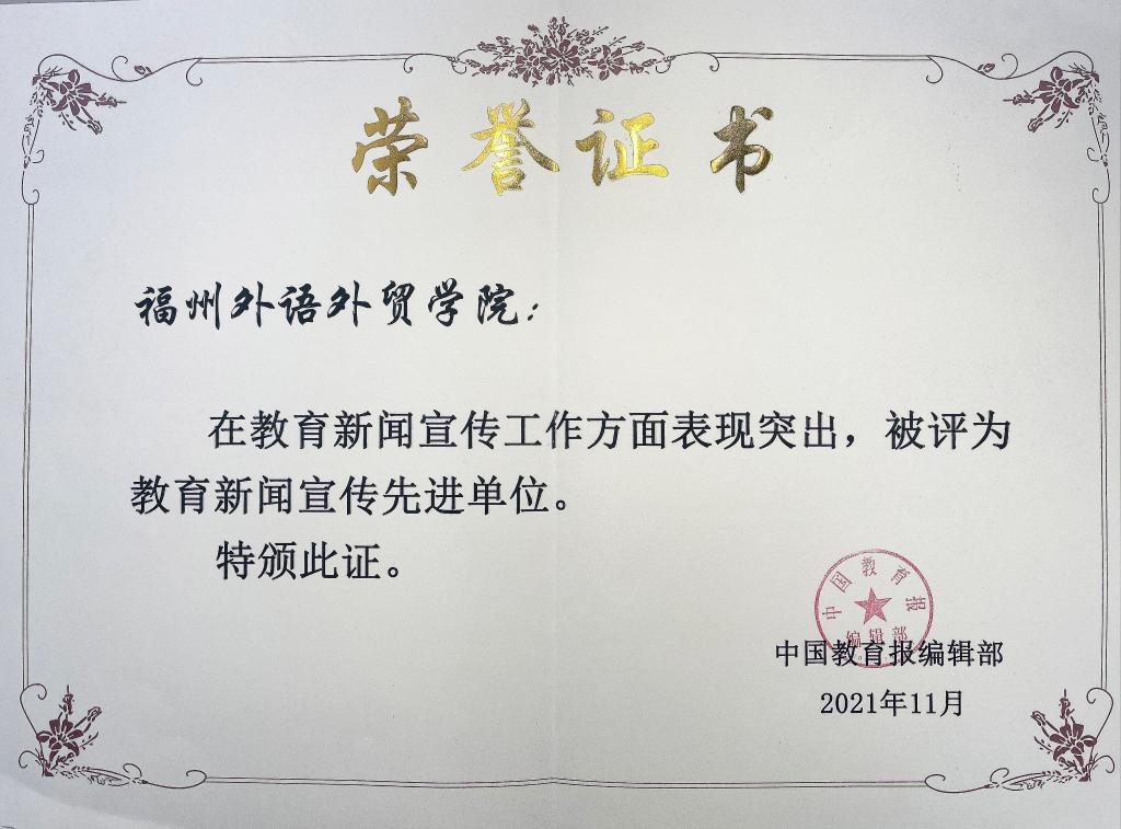 日前,从《中国教育报》获悉,为表彰我校在2021年教育新闻宣传工作方面突出表现,中国教育报编辑部授予我校教育新闻宣传先进单位。