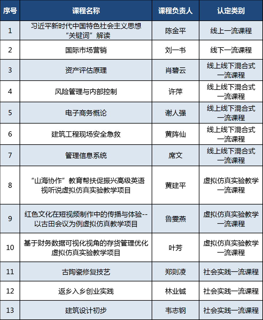 近日,福建省教育厅公布《福建省教育厅开元网页版公布2021年省级一流本科课程名单的通知》,我校13门课程获2021年省级一流本科课程认定,获批总数位居全省民办高校首位。