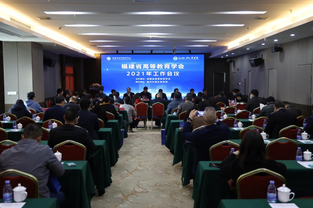 1月8日,福建省高等教育学会2021年度工作会议通过线上线下相结合的方式召开。福建省教育厅副厅长(正厅长级)刘健、福建省高等教育学会会长李宝银,福建省教育厅高教处处长欧阳迪莎,我校校长许明、党委书记陈炳钦,学会第八届理事会、监事会领导机构成员,学会常务理事,各分支机构秘书长或负责人在我校学术交流中心参加线下会议;学会第八届理事、会员在线上参会。会议由学会副会长、秘书长黄跃鹏主持。