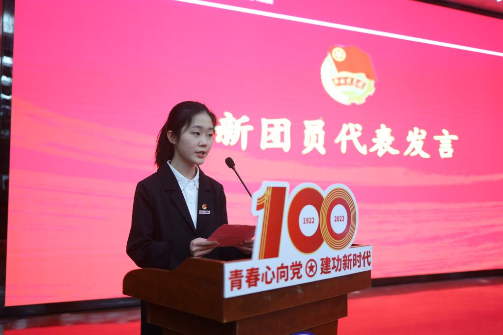 2020级小学教育专业刘晨煜作为新团员代表发言。她表示将不忘初心、牢记使命,在学习中受教育、长才干。将理论知识与实际相结合,在拼搏中发挥青春力量,在奋进中展现青年风采,在实现中华民族伟大复兴中国梦的新征程上奋勇前进!