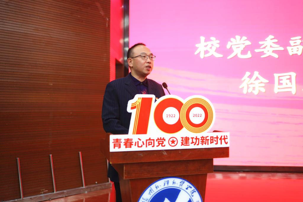 徐国立在讲话中指出,我党历来高度重视青年,习近平总书记多次通过演讲、座谈等方式与青年频频互动,对当代中国青年寄予了殷切期望。他强调,全校各级团组织和广大青年要认真学习深入领会习近平总书记在庆祝中国共产主义青年团成立100周年大会上的重要讲话精神,切实把思想和行动统一到讲话精神上来,坚定不移听党话、跟党走,在新征程上继往开来、砥砺奋进。他要求广大青年师生:一要原原本本学习,深刻领会习近平总书记重要讲话精神的丰富内涵和重大意义。二要认认真真落实,推动习近平总书记重要讲话精神形成生动实践。三要扎扎实实牢记,牢记习近平总书记对青年的希望和嘱托,勇担时代重任,勇立时代潮头。他希望福外青年不负重托、不辱使命、不懈奋斗,在扛起新使命、谱写新篇章中奏响新时代的青春之歌,以实际行动迎接党的二十大胜利召开,在实现中华民族伟大复兴中国梦的新征程上跑出福外青年的最好成绩!