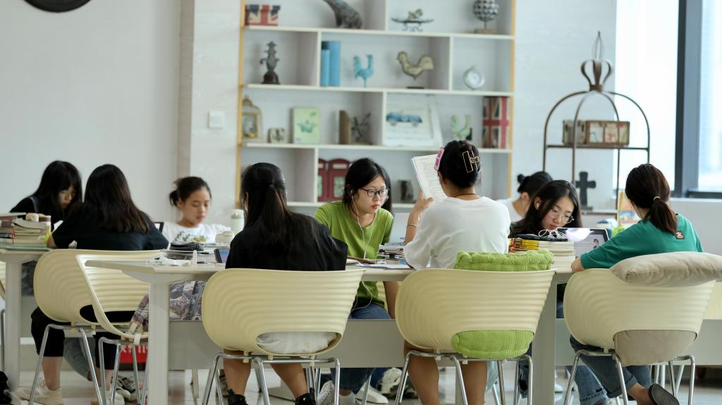 图书馆里、自习室内福外考研学子每天与题海相伴低头是密密麻麻的复习资料