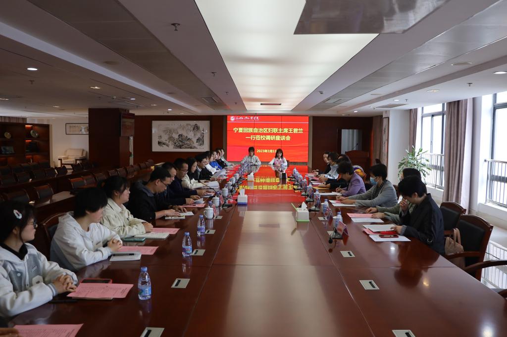 座谈会上,黄建平汇报了我校2022级宁夏籍女大学生基本情况,并从贯彻好资助政策、落实好结对帮扶、推进好导师制⼯作等三个方面介绍了我校帮扶宁夏籍女大学生的做法。宁夏籍女大学生代表逐一分享了在校学习生活情况。