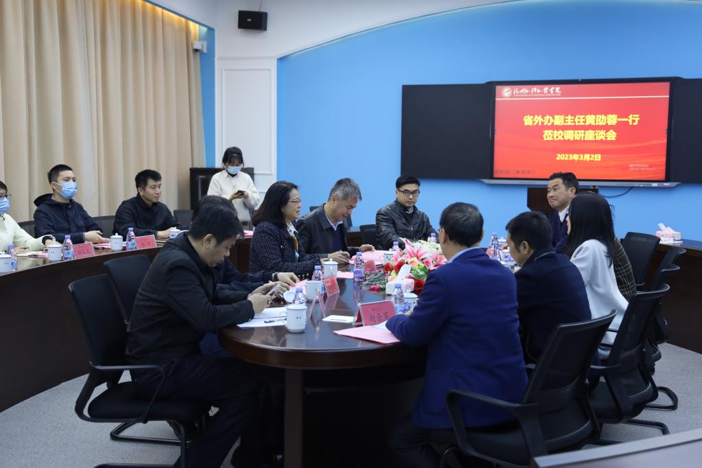 3月2日,省外办党组成员、副主任黄劭蓉一行莅临我校开展工作调研,并召开座谈会。市外办党组成员、副主任杜维广,长乐区政府副区长陈爱玉,我校董事长吴新星,副校长、纪委书记季祖强陪同调研。