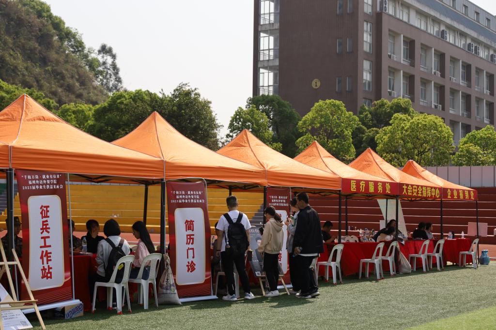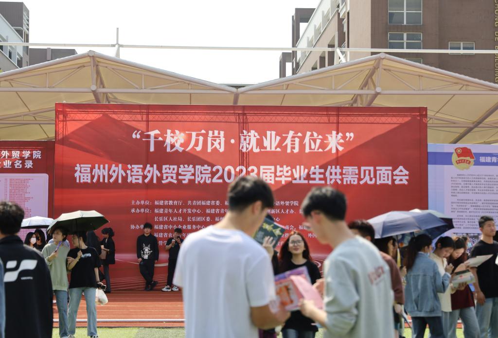 4月11日,由福建省教育厅、共青团福建省委、福州新区管委会及我校主办的“千校万岗·就业有位来”福州外语外贸学院2023届毕业生供需见面会(以下简称“招聘会”)在学校田径场举行。