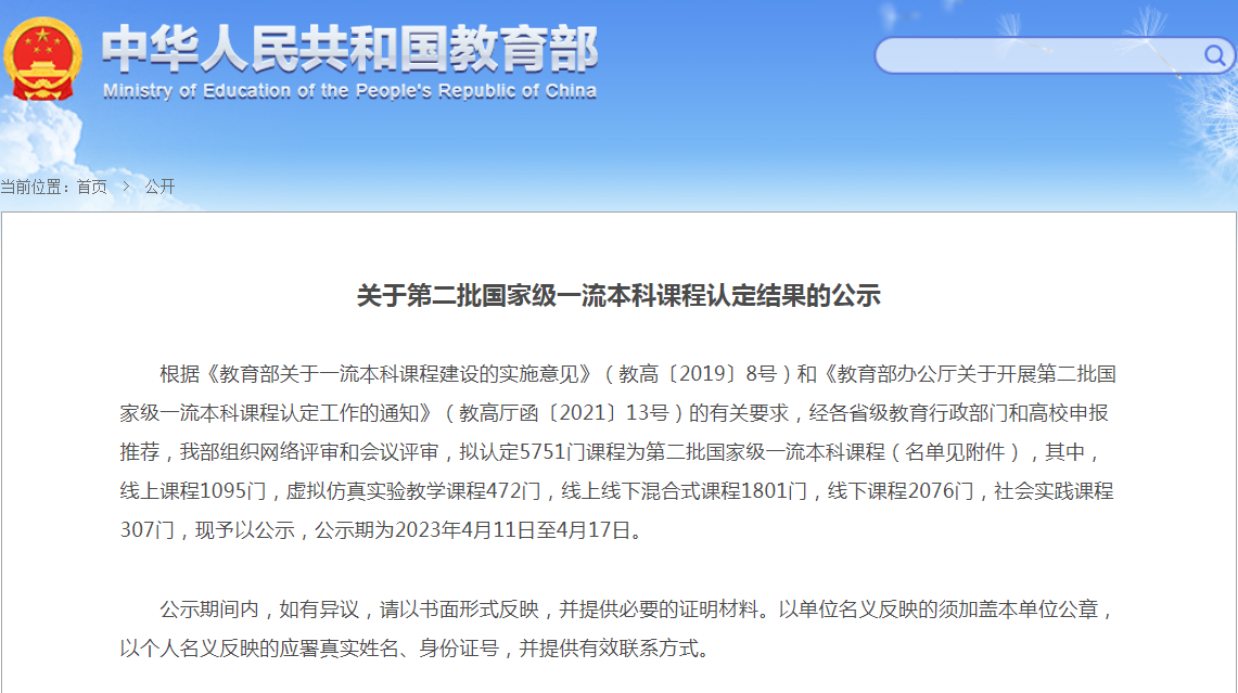 近日,教育部发布《开元网页版第二批国家级一流本科课程认定结果的公示》,我校《基础法语》《英语国家概况》《乡村振兴理论与实践》《疫情防控背景下应急物流配送方案设计虚拟仿真实验教学项目》等4门课程入选。据悉,本次共5751门课程拟认定为第二批国家级一流本科课程,我校入选数目居全国民办高校第二位,全省高校第九位。