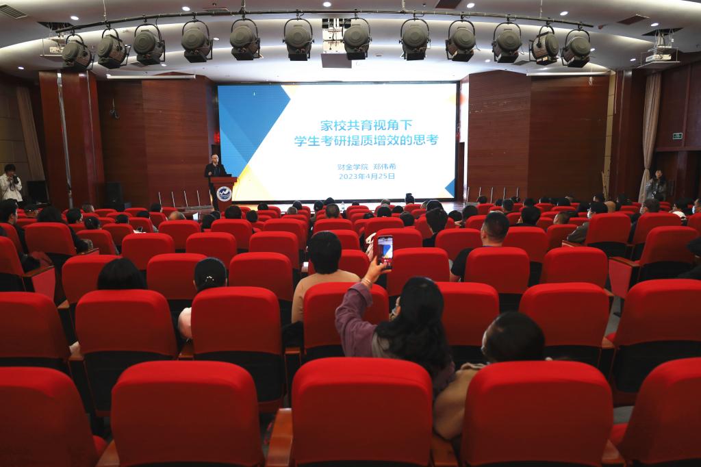 在家长开放日家长见面会上,财金学院副院长郑伟希、学生发展中心副主任石峰、国际教育中心范莉依次为家长们介绍了学校考研、就业、考公、国(镜)外合作项目等支持政策。经管学院学生家长张女士说:“升学、就业都是我们关心的,学校站在我们家长的角度在培养孩子,不仅提供政策支持,还有很多与境外学校合作的项目,非常感谢学校。”