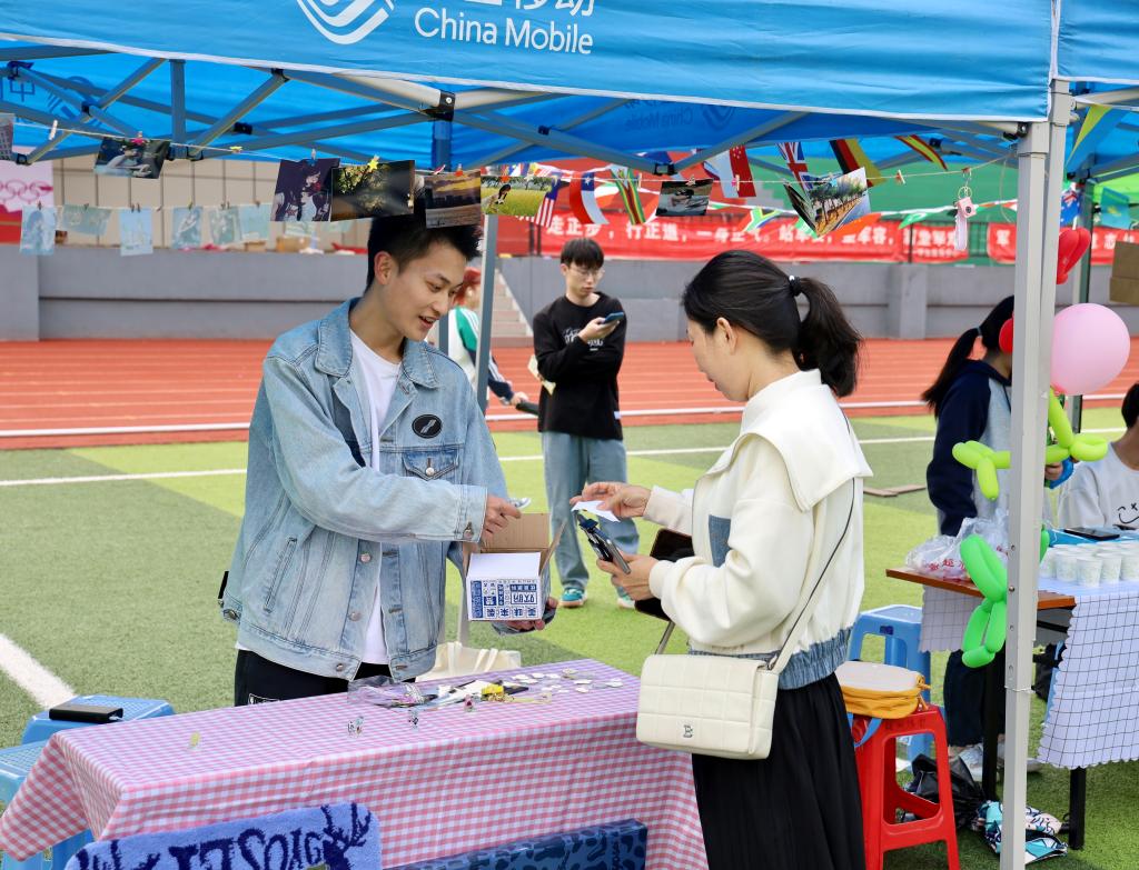 在体验过学生餐厅后家长们来到田径场参加学生社团活动,与孩子们共同感受青春校园。