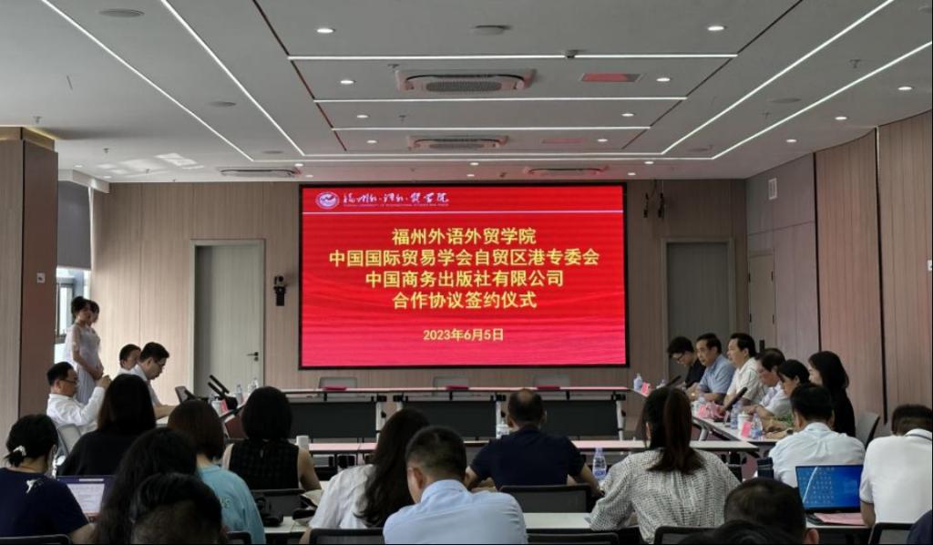 6月5日,我校与中国国际贸易学会自贸区港专委会、中国商务出版社有限公司举行三方合作协议签约仪式。中国国际贸易学会自贸区港专业委员会主任张国庆,中国商务出版社社长李学新,中国国际贸易学会自贸区港专委会副主任、秘书长李自满,我校党委书记陈炳钦出席签约仪式。有关部门、学院同志参加仪式。