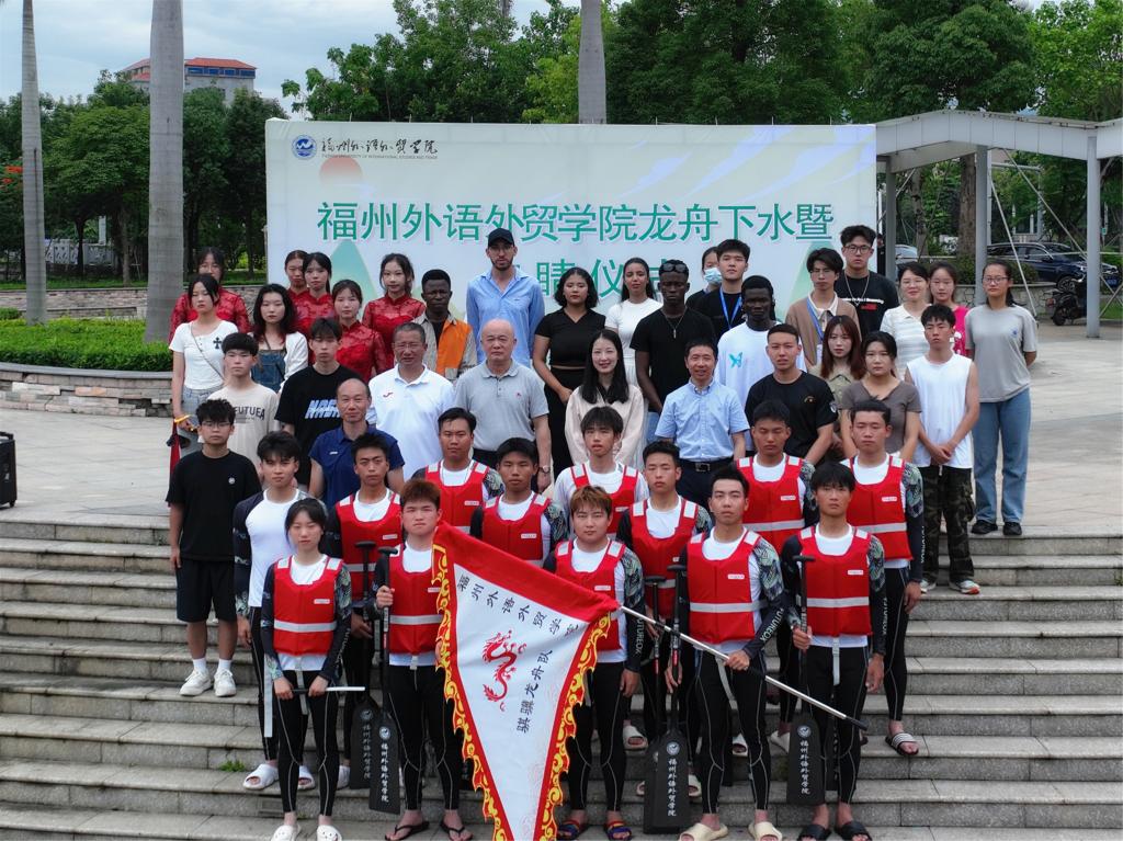 为深入开展学习贯彻习近平新时代中国特色社会主义思想主题教育,弘扬中华优秀传统文化,6月18日,福州外语外贸学院举行龙舟队下水暨点睛仪式。董事长吴新星,校长许明,副校长、纪委书记季祖强,校龙舟队全体成员,有关部门负责同志及中外师生代表齐聚东岱湖畔,共同见证龙舟下水。
