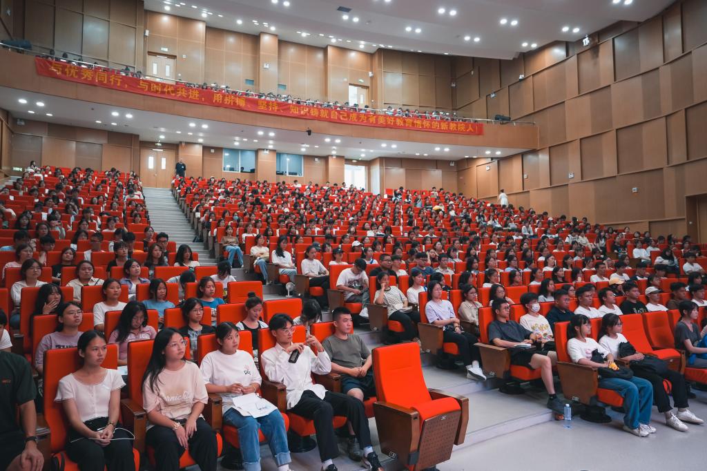 9月18日下午,校长、博士生导师许明教授在博雅音乐厅为教育学院2023级全体新生讲授“开学第一课”。