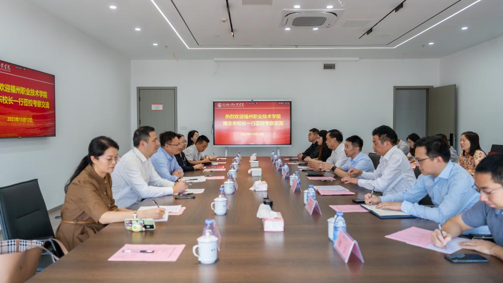 10月12日,福州职业技术学院校长陈念东一行来校考察交流。我校副校长、纪委书记、工会主席季祖强,校长助理黄鸿鸿热情接待了来宾。国际教育中心、校务中心、国际商学院以及艺术与设计学院有关负责同志参加活动。
