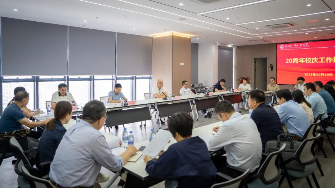 10月19日,我校20周年校庆工作推进会在校部办公大楼第三会议室召开。会议由校长许明主持,全体校领导出席会议,各中心主任以及各二级学院院长、书记参加会议。