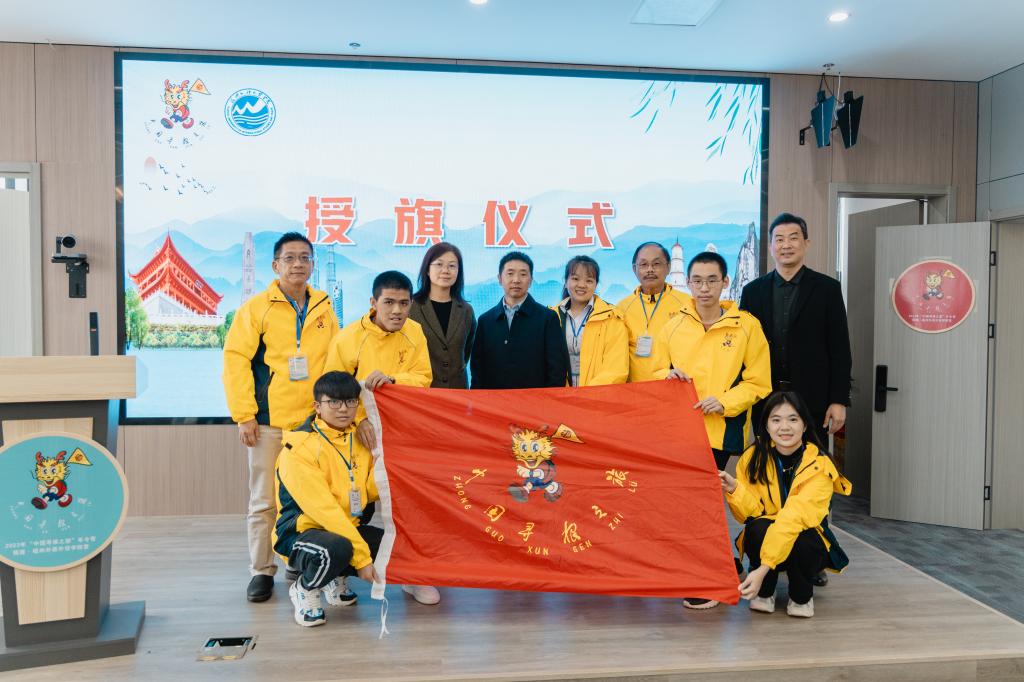 福建省侨联文化交流部四级调研员陈育良,福州外语外贸学院副校长季祖强,以及来自马来西亚的30名海外华裔青少年和领队等出席开营仪式。陈育良为本期冬令营授旗。