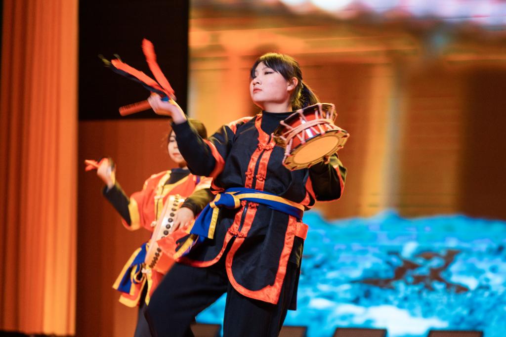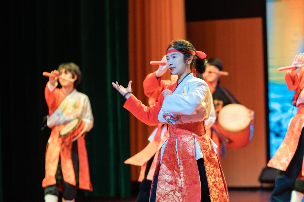 活动中,冲绳民间大使、三线(冲绳传统乐器)表演家西原圭佑先生上台展示了充满岛国风情的三线弹唱,福州外语外贸学院古韵瑞音民乐团表演了极具中国特色的民乐《丰收锣鼓》。欢快而活泼的太鼓,古老而悠扬的乐曲,共同演绎了闽琉两地和谐的文化乐章。