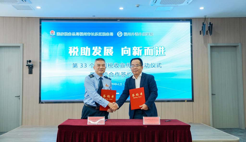 4月1日,我校与国家税务总局福州市长乐区税务局举行主题为“税助发展 向新而进”的第33个全国税收宣传月启动仪式暨税校合作签约仪式。福州市长乐区税务局党委书记、局长王云剑,党委委员、副局长何伟,党委委员、副局长黄河,我校党委副书记、执行校长黄建平,学生工作部部长刘若福,财务与会计学院院长林晓薇出席。
