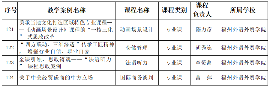 福建省高校第二批课程思政优秀教学案例我校入选名单