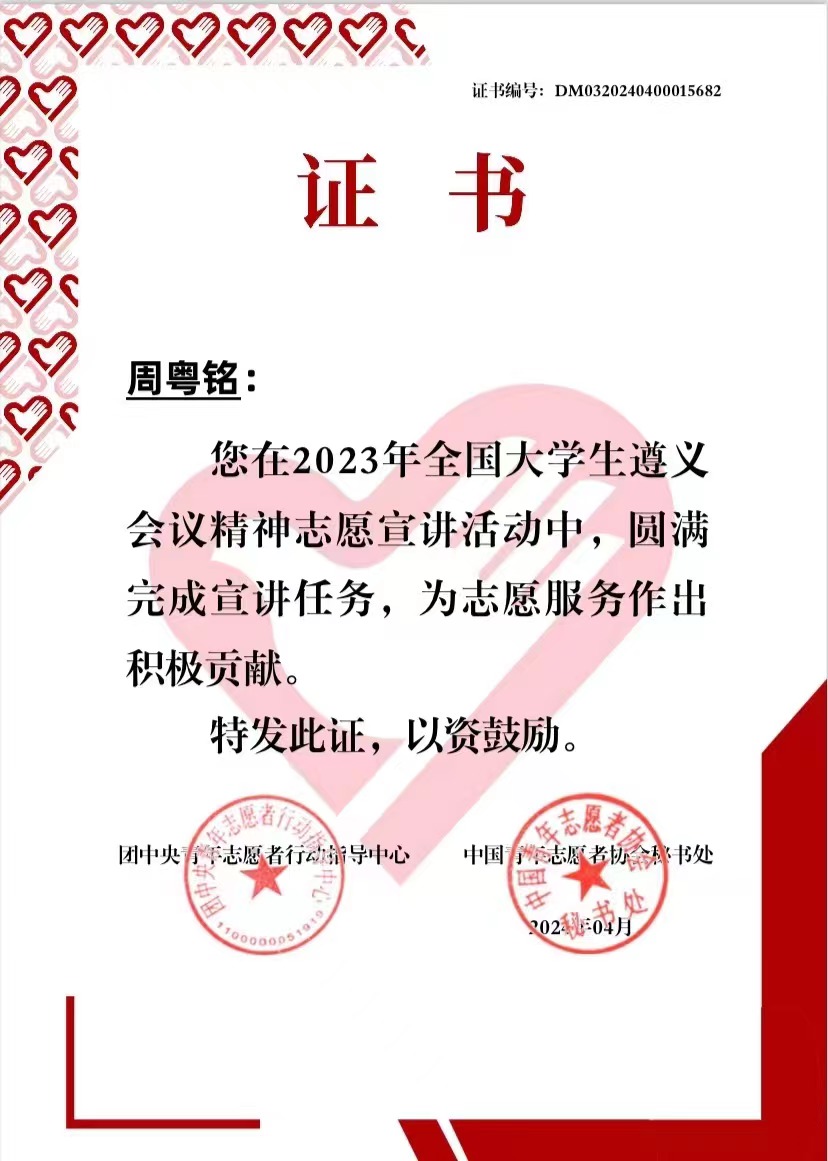 优秀团队证书和部分个人证书蒲公英宣讲团由智能建造学院10名青年志愿者组成。团队在指导老师吴晓凯、张李通的悉心指导下,紧紧围绕遵义精神内涵,精心设计宣讲途径,匠心打磨宣讲文稿,深入福州、长乐、马尾等地开展理论宣讲,助力当地学子坚定理想信念,厚植家国情怀。现已面向6个基层党团支部、3个校级学生组织、2所中小学校、3条街道基层组织开展宣讲,受众人数超3000人,团队成员人均志愿服务时长300小时。