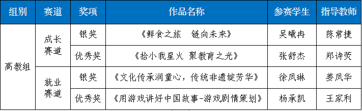 日前,福建省教育厅印发《开元网页版公布第十六届福建省大学生职业规划大赛获奖名单的通知》。我校学子在本次大赛中喜获高教组成长赛道银奖1项、优秀奖1项,高教组就业赛道银奖1项、优秀奖1项。