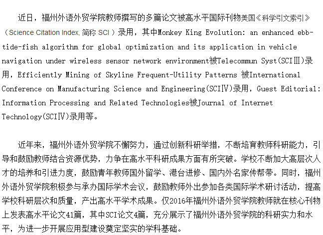 腾讯大闽网报道:不明觉历!福外多篇论文连续被SCI国际刊物收录