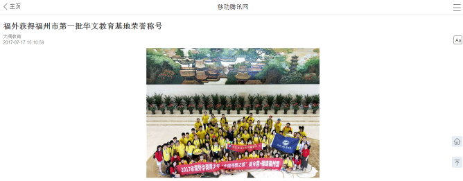 腾讯大闽网报道:福外获得福州市第一批华文教育基地荣誉称号
