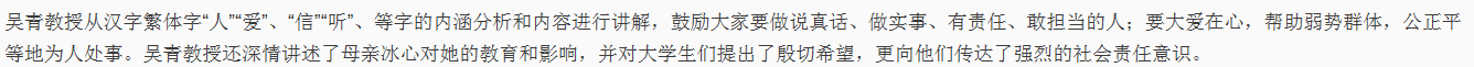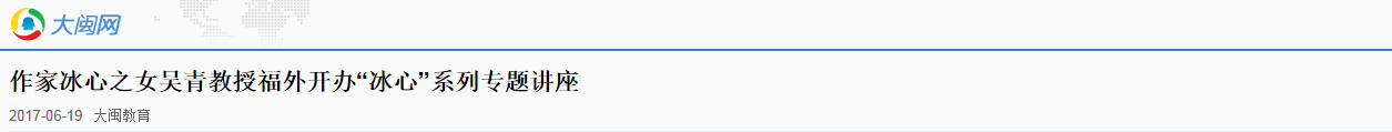 腾讯大闽网报道:作家冰心之女吴青教授福外开办“冰心”系列专题讲座