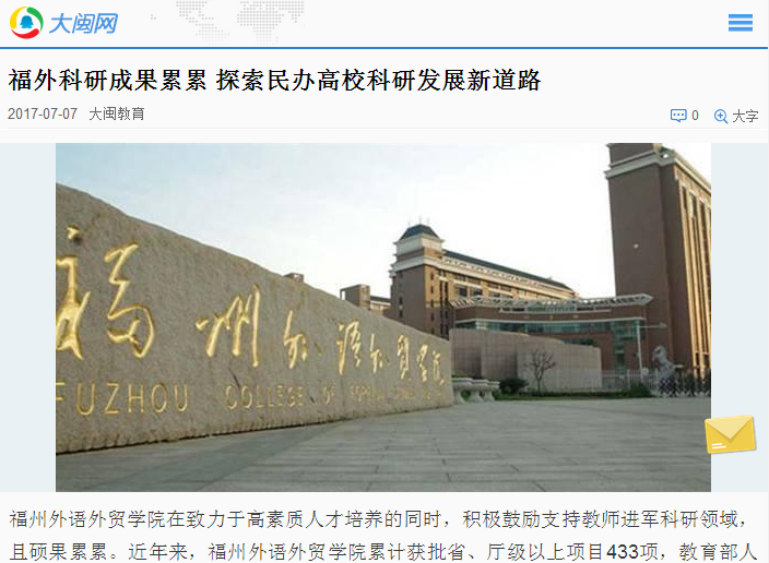 腾讯大闽网报道:福外科研成果累累 探索民办高校科研发展新道路