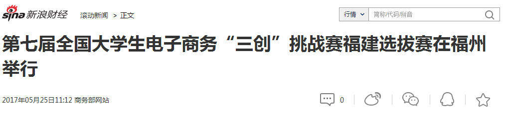 新浪财经报道:第七届全国大学生电子商务“三创”挑战赛福建选拔赛在福州举行