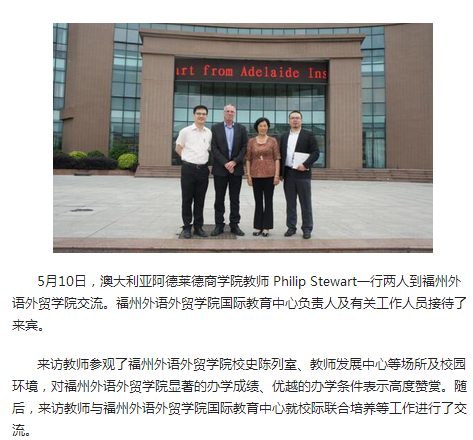 人民网报道:澳大利亚阿德莱德商学院教师到福州外语外贸学院交流
