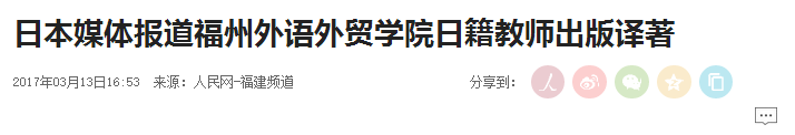 人民网报道:日本媒体报道福州外语外贸学院日籍教师出版译著